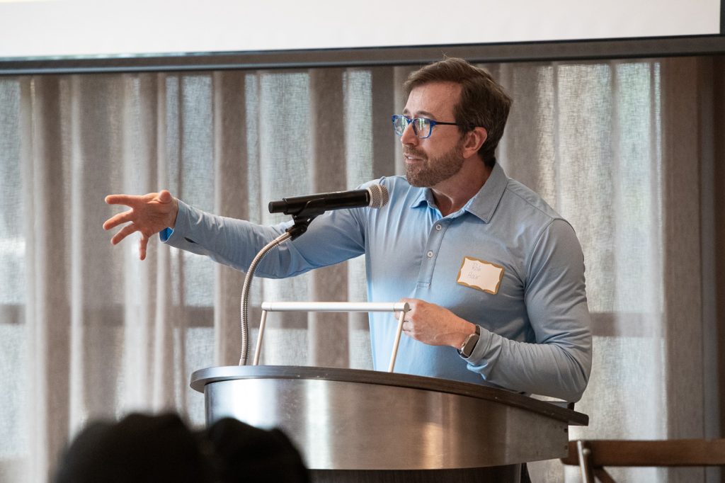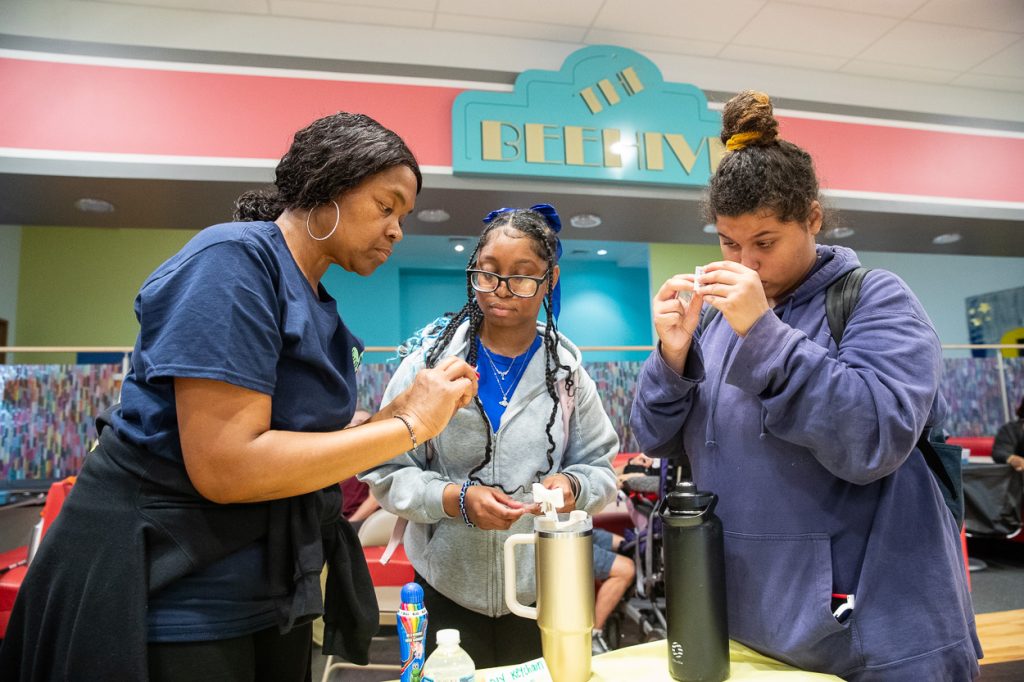 an aerial view of a building with a walkway leading to it.